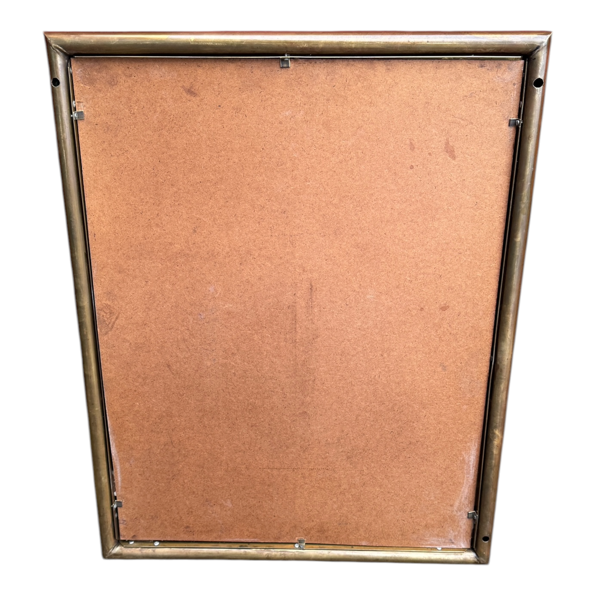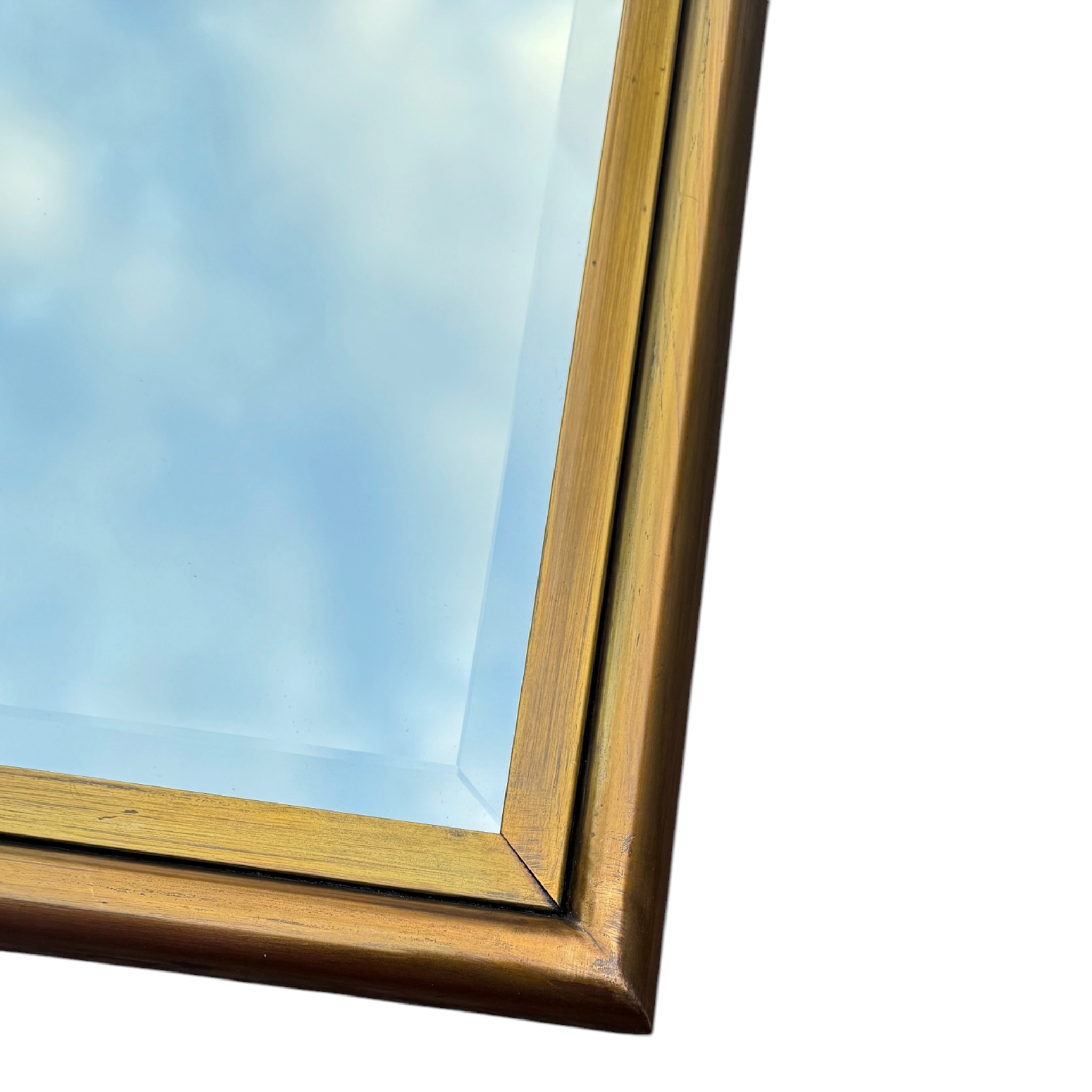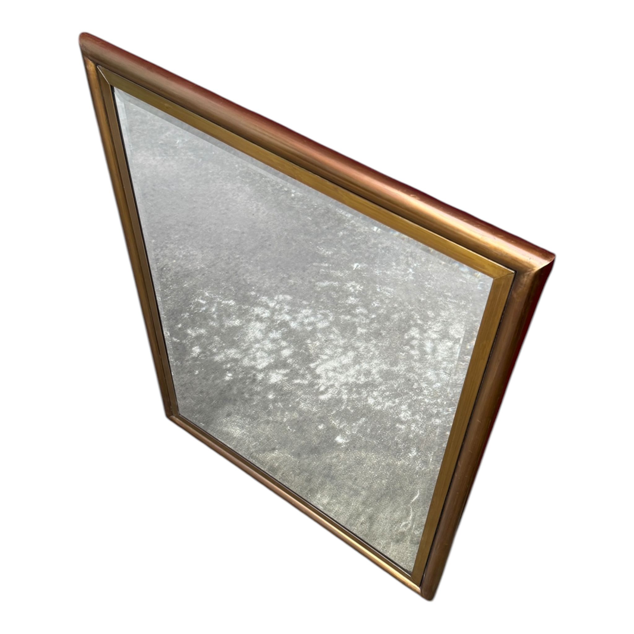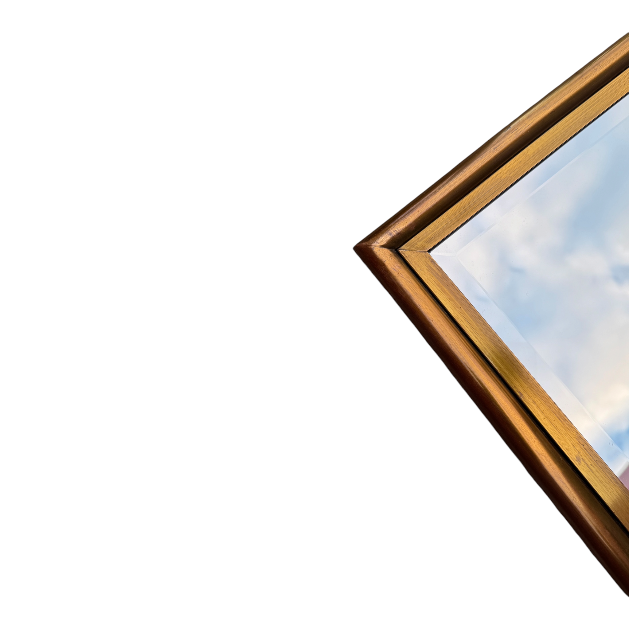 Elegante espejo de pared de mediados del siglo XX, enmarcado en bronce con una pátina natural que atestigua su autenticidad . Su diseño geométrico y refinado rinde homenaje a la estética Art Déco, aportando sofisticación y carácter a cualquier espacio. El cristal biselado de alta calidad se integra armoniosamente con la robustez del metal, creando una pieza de decoración excepcional y atemporal.